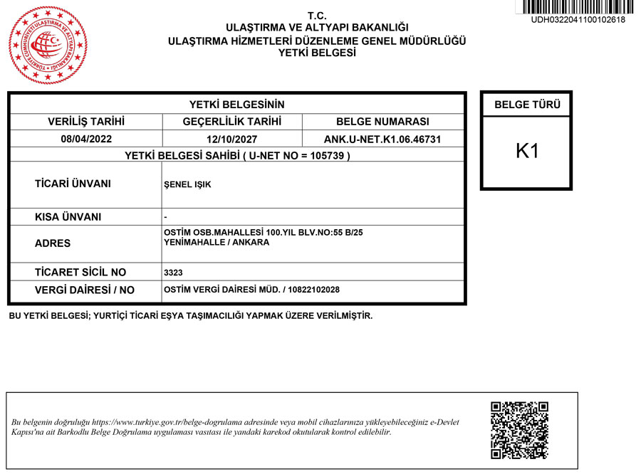 K1 YETKİ BELGEMİZ